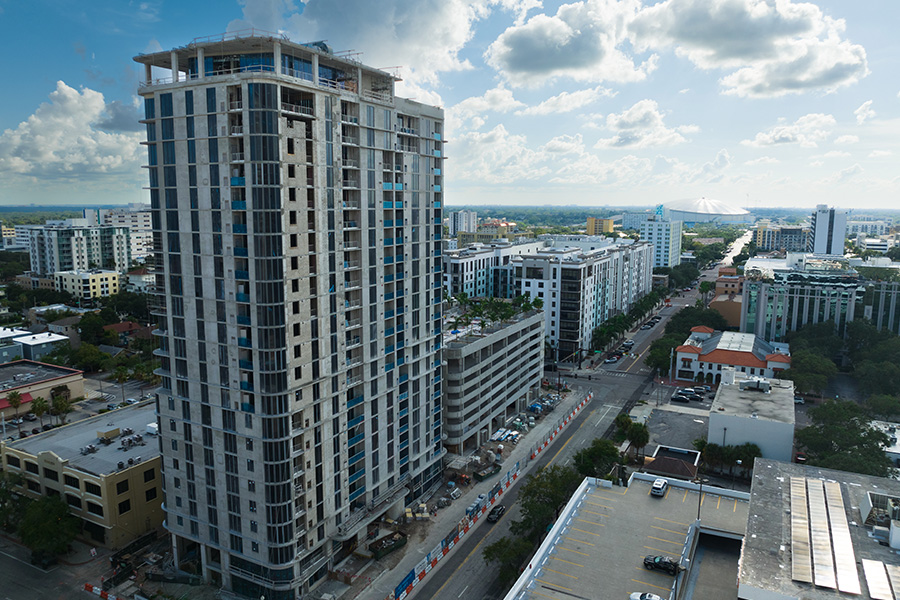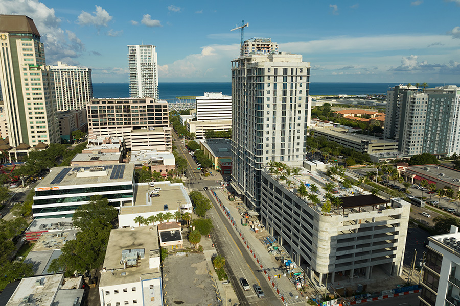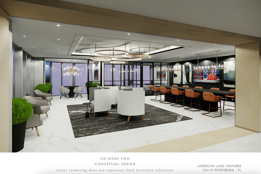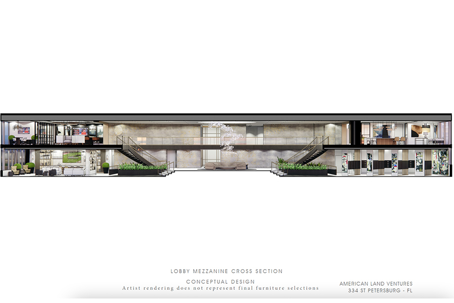 Visit our temporary leasing office, located at 200 Central Ave. 4th Floor, on Industrious level to learn more. Elevators are located on the first floor, in the center of the Raymond James Building.
